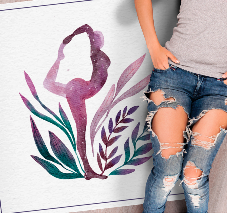 Referencia: R9853Alfombra de vinilo vintage Pose de yoga acuarela