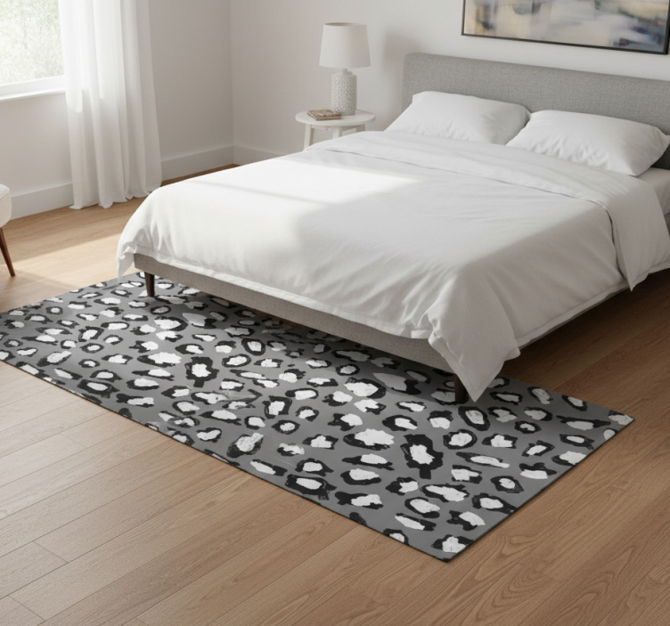 Alfombra vinílica animal print leopardo gris y blanco