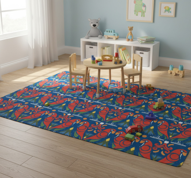 La limpieza de la alfombra vinílica animales es muy sencilla. Con un paño húmedo y un poco de detergente suave, podrás mantener tu alfombra vinílica animales diseño floral fondo azul impecable. Su resistencia a las manchas y su superficie fácil de limpiar garantizan que lucirá siempre como nueva, ideal para hogares con niños o mascotas.