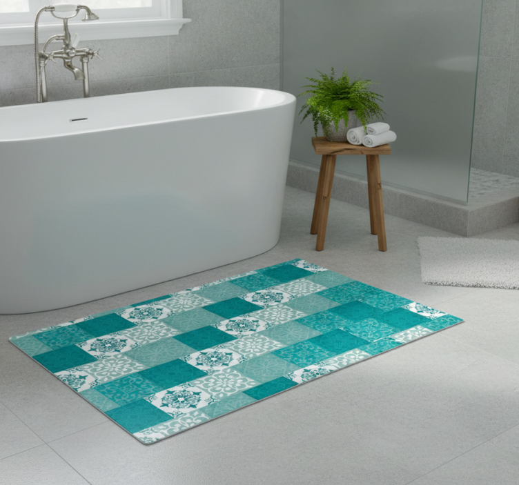 Alfombra vinílica baño azulejo turquesa
