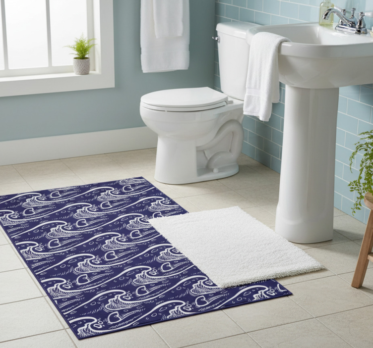 Alfombra vinílica baño fondo de olas azules