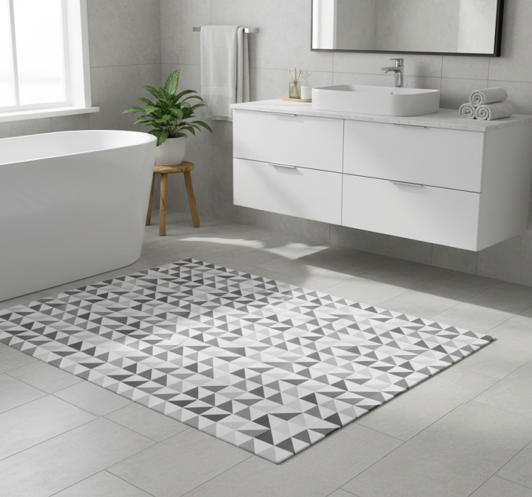Alfombra vinílica baño triángulos geométricos