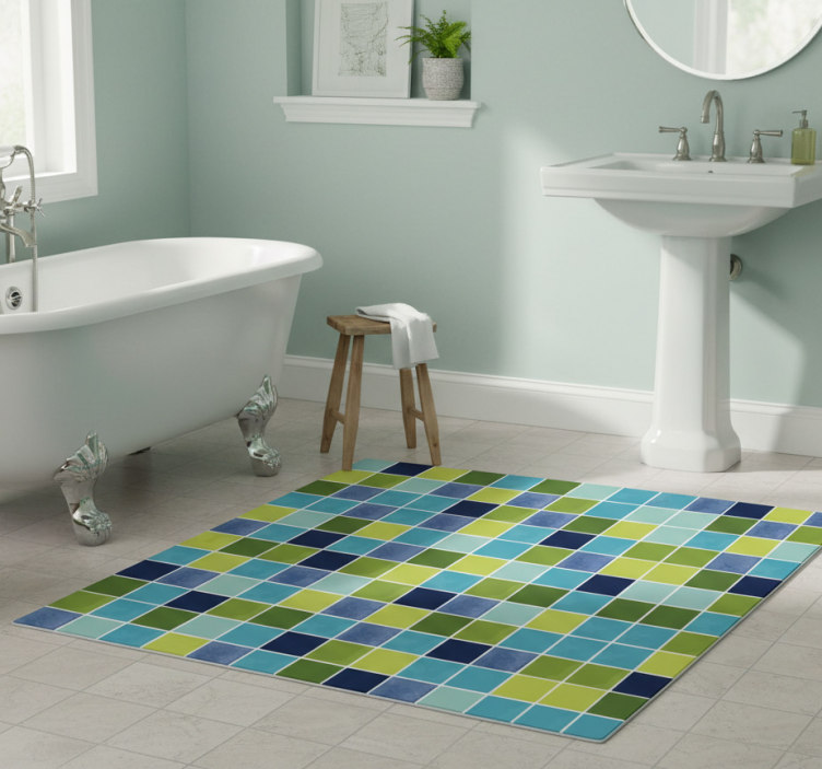 La alfombra vinílica baño azulejos azul y verde no solo transforma el ambiente de tu baño, sino que también lo hace de una manera inspiradora. Imagina entrar a un espacio que respira frescura y estilo, donde cada paso se siente cómodo y acogedor. Este producto es ideal para quienes buscan un toque de color y personalidad, realzando la estética de tu hogar sin complicaciones. ¡Dale a tu baño la renovación que merece con esta maravillosa alfombra!