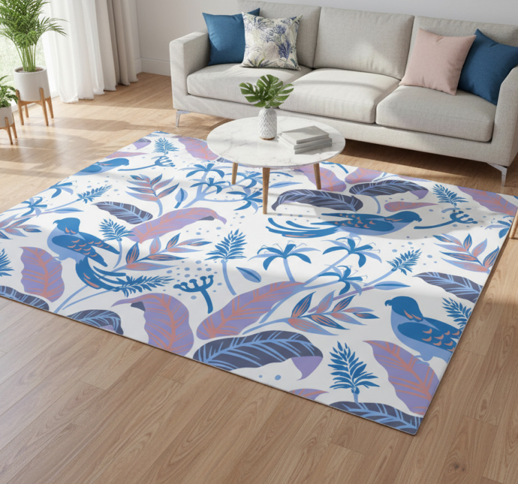 Alfombra vinílica flores aves azules y rosas en hojas