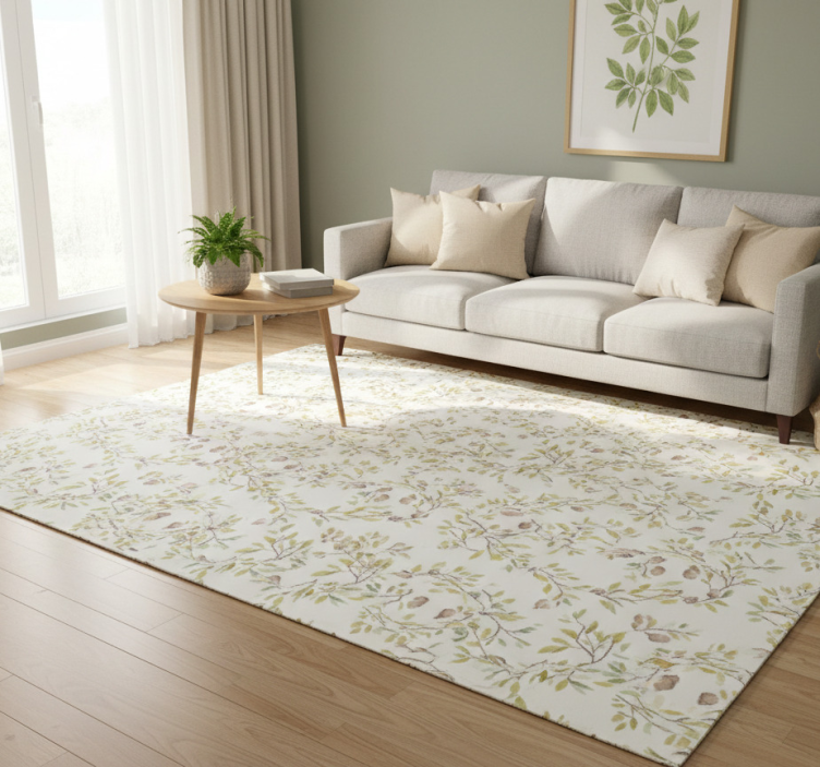 Alfombra vinílica flores diseño de hojas verdes acuareladas