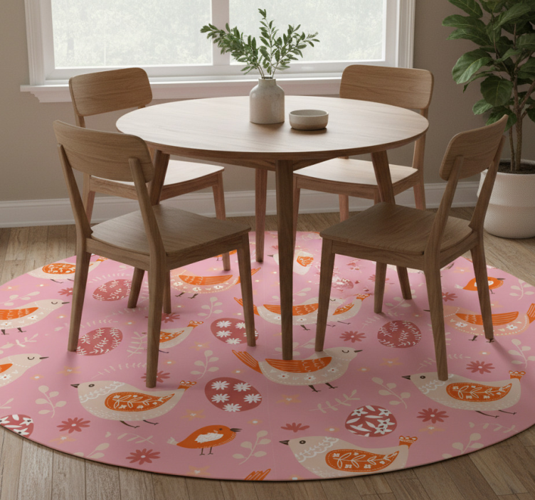 Alfombra vinílica flores diseño folk rosa con pájaros
