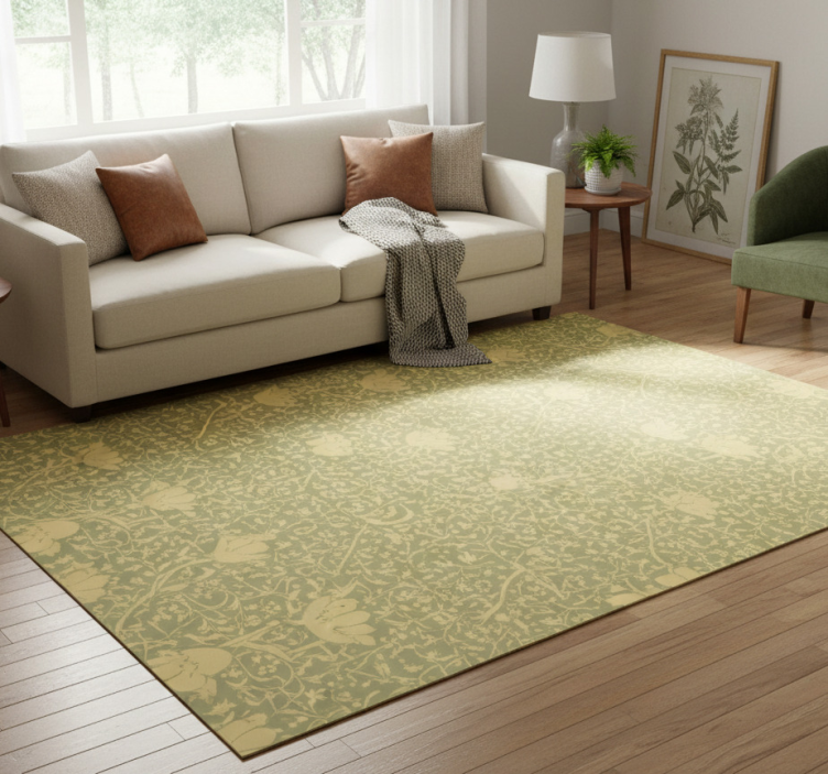 Alfombra vinílica flores doradas y verdes sutiles