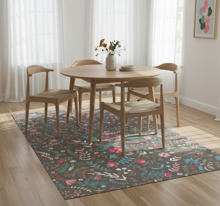 Alfombra vinílica flores estampado floral colorido