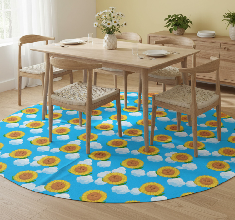 Alfombra vinílica flores flor amarilla sonriente en el cielo