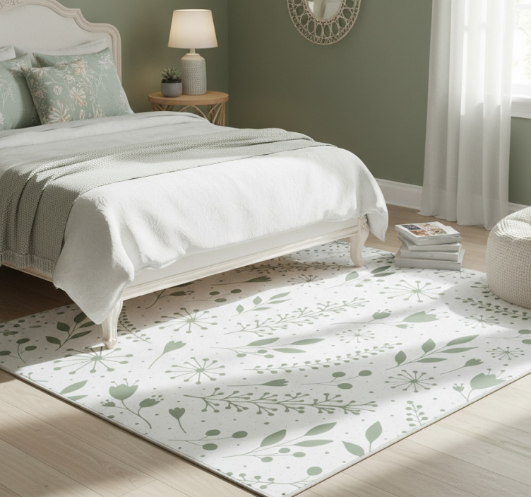 Alfombra vinílica flores hojas verdes con flores