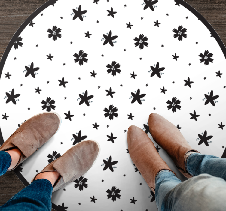 La alfombra vinílica flores patrón estrella floral es una obra maestra visual que transforma cualquier espacio con su diseño elegante y cautivador. Con un estampado de flores en un atractivo contraste de blanco y negro, su patrón estrella floral aporta un toque de frescura y estilo contemporáneo, ideal para quienes buscan dar vida a sus ambientes. Esta alfombra no solo es una pieza decorativa, sino que también crea una atmósfera acogedora y vibrante en cualquier habitación.