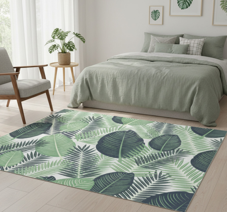 Alfombra vinílica flores plantas grandes verdes