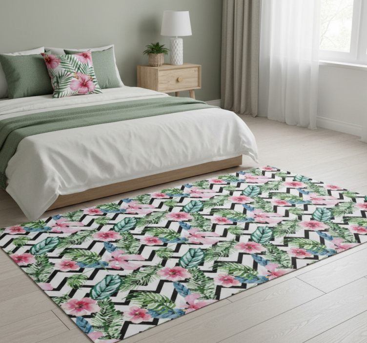 La alfombra vinílica flores zigzag tropical verde es la elección perfecta para quienes buscan dar un toque especial a su decoración. Su diseño único y colorido inspira alegría y vitalidad, convirtiéndose en el centro de atención de cualquier habitación. Además, su versatilidad permite que se adapte a diferentes estilos decorativos, desde lo más moderno hasta lo más rústico. ¡Deja que tu hogar cuente una historia llena de vida y color!