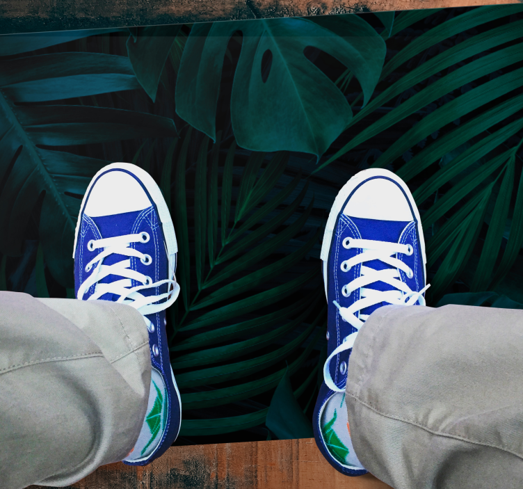 La alfombra vinílica flores follaje tropical es una pieza decorativa única que presenta un diseño gráfico inspirado en la naturaleza, con hojas, vegetación exuberante y una paleta de colores verdes vibrantes. Perfecta para añadir un toque de frescura y vitalidad a cualquier espacio.