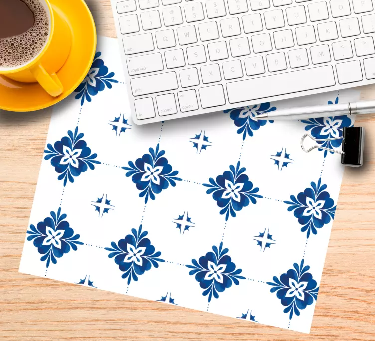 Descubre nuestra Mouse pad texturas diseño floral, una pieza única que combina azulejos en tonos azules con un hermoso estampado floral. Su diseño clásico y geométrico se entrelaza con un fondo blanco decorativo, creando una armonía visual que alegrará cualquier espacio de trabajo. ¡Es la elección perfecta para quienes buscan estilo y funcionalidad!