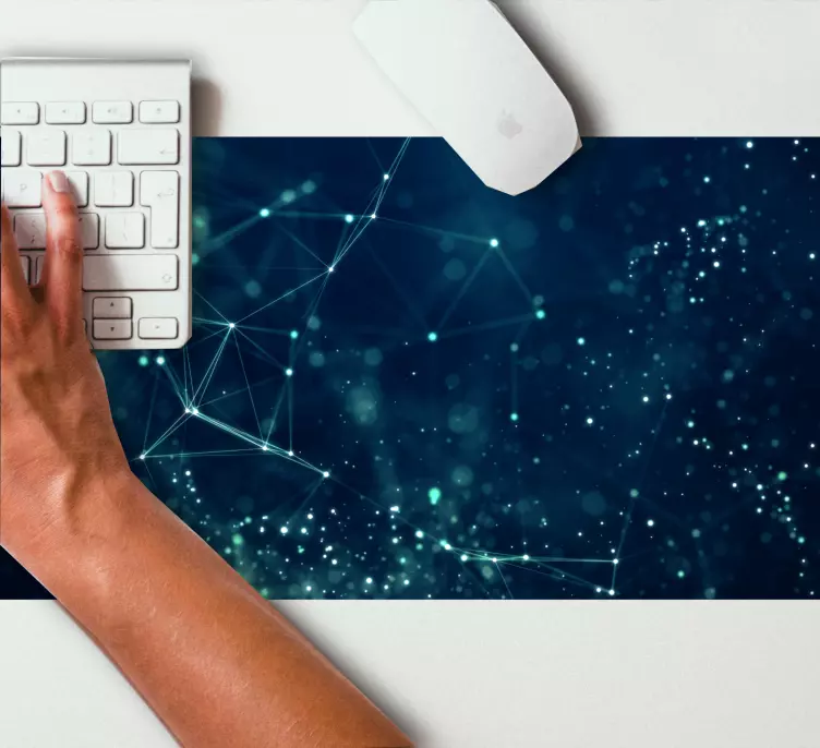 Descubre el fascinante mundo del Mouse pad texturas diseño inspirado en tecnología, donde la ciencia se encuentra con el arte. Este diseño gráfico presenta una emocionante ilustración de moléculas y formas abstractas que evocan la química y las ciencias, todo en una paleta de colores azules brillantes. Su estilo futurista y arte lineal se integran perfectamente, creando una red visual que cautiva los sentidos y transforma cualquier espacio de trabajo en un entorno inspirador.