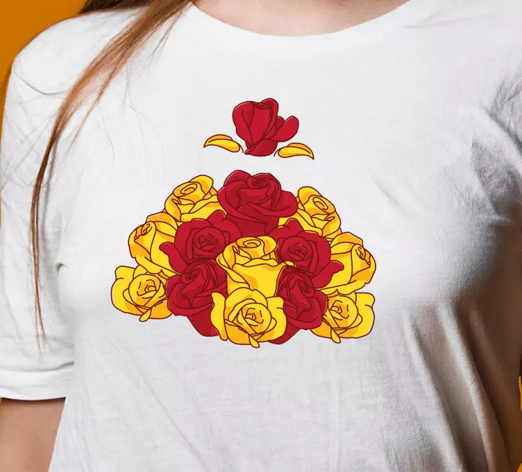 Referencia: T984Camisa de flores dibujadas en amarillo y rojo