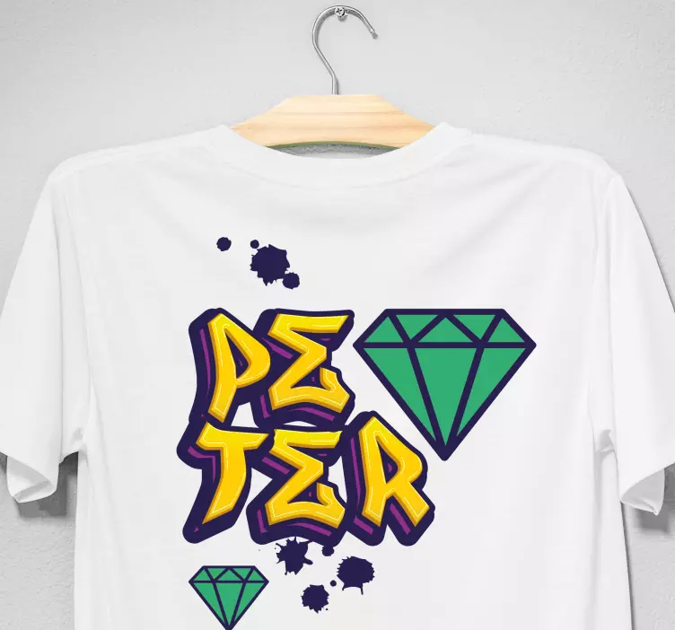 Esta camisa es perfecta para ti o para tu hijo. Obtén este diseño si eres fanático de los diseños modernos con nombre de dibujos animados y diamante. El nombre amarillo y los dibujos animados de diamante verde hacen que esta camisa sea única y llamativa.