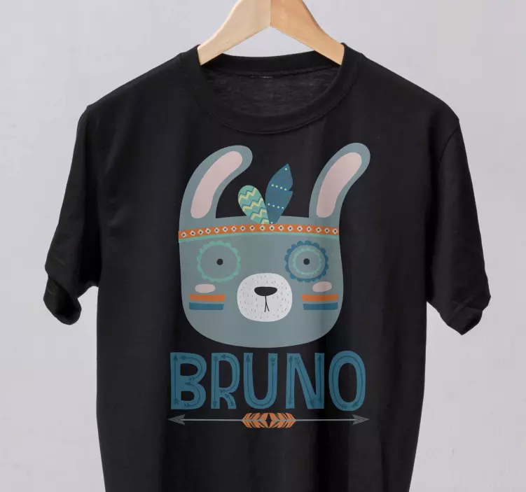 Referencia: T4967Este encantador diseño presenta una adorable cara de conejo con elementos decorativos como una pluma y marcas coloridas. El nombre 'Bruno' añade un toque personalizado, lo que lo convierte en una elección encantadora para los niños. Sus colores juguetones y su carácter caprichoso atraen a un público más joven.