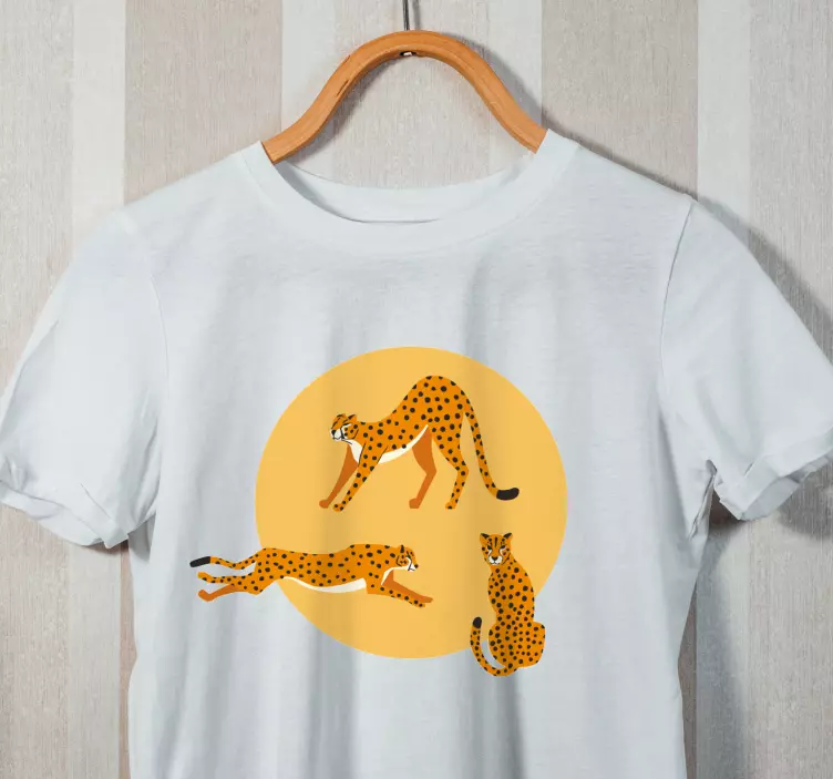 Si eres fanático de los leopardos, esta camiseta es para ti. La mezcla de geometría con la imagen del leopardo es una combinación única y llamativa. Consigue esta camiseta de círculo amarillo con poses de leopardo.