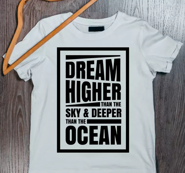 La camiseta sueña más alto frase inspiradora es una pieza única que combina un diseño gráfico cautivador con un mensaje motivacional que te inspirará a alcanzar tus sueños. Este modelo presenta una tipografía en blanco y negro que resalta la frase 'sueña más alto', evocando la inmensidad del cielo y la fuerza de las palabras positivas. Es ideal para quienes buscan un estilo que no solo sea atractivo, sino que también lleve consigo un poderoso mensaje de superación.