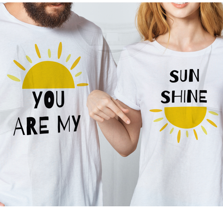 Referencia: T5107Este encantador diseño presenta a una pareja vistiendo camisetas a juego adornadas con alegres motivos de sol y cálidas frases afectuosas. Los colores soleados evocan sentimientos de alegría y conexión, lo que lo convierte en una elección perfecta para expresar el amor de una manera encantadora.
