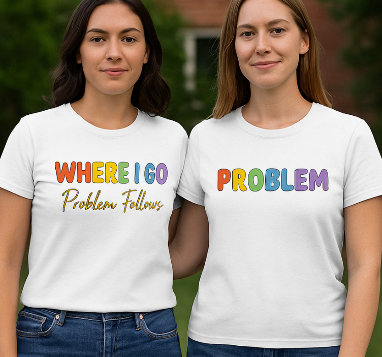 Camisetas parejas lgbt donde voy problemas siguen