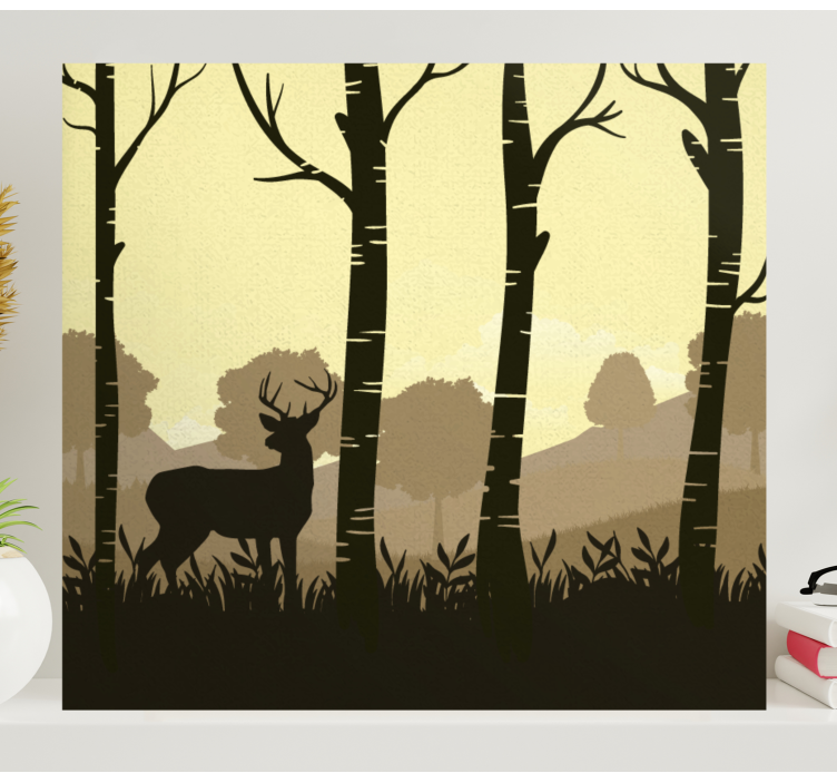 Descubre la belleza natural con nuestro Cuadro ciervos silueta de ciervo entre árboles. Este impresionante diseño presenta la elegante silueta de un ciervo rodeado de majestuosos árboles, césped fresco y rico follaje que evocan la esencia de la naturaleza. Sumérgete en un paisaje sereno que captura la esencia de la fauna silvestre en un bosque encantador. Cada trazo y detalle de esta obra maestra te transportará a un mundo de tranquilidad y armonía, convirtiéndola en una pieza ideal para cualquier espacio.
