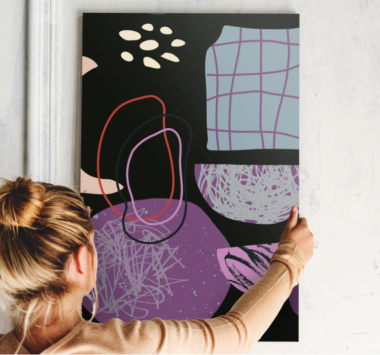 Descubre la belleza única de nuestro Cuadro ornamental características botánicas abstractas, donde las formas y el collage se fusionan en tonos vibrantes de púrpura, lila, morado y violeta. Este diseño geométrico y abstracto da vida a cualquier espacio, aportando un aire moderno y artístico que transformará tu hogar en un oasis de creatividad y estilo.