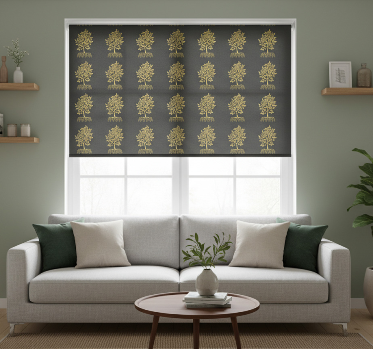 Persiana enrollable moderno contorno de árboles dorados