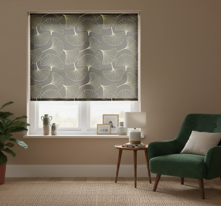Persiana enrollable moderno hojas de ginkgo charcoal oro