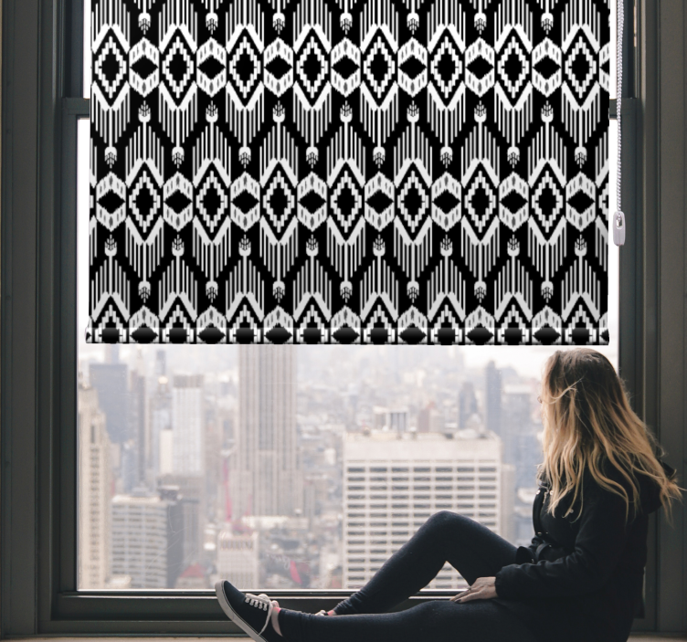 Descubre la Persiana enrollable textura patrón geométrico negro, un elemento decorativo que fusiona la elegancia con un diseño étnico. Con su patrón de formas geométricas en tonos negros y blancos, esta persiana aporta un aire rústico y sofisticado a cualquier espacio. Su estampado vibrante transforma la atmósfera de tu hogar, haciendo que cada rincón sea un lugar acogedor y lleno de estilo.