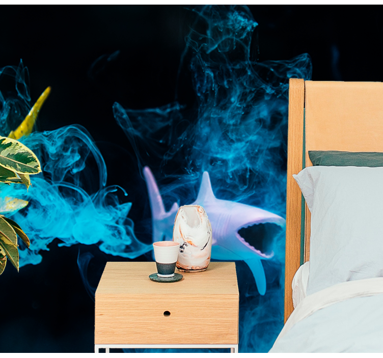 Descubre un universo vibrante con nuestro Mural de animales ilustración de tiburón colorido, donde un tiburón majestuoso se sumerge en un océano lleno de vida marina. Este diseño cautivador presenta elementos como agua, humo y fotomontaje, creando una atmósfera submarina que te transportará a las profundidades del mar. Con marineros y temas marítimos, cada detalle está meticulosamente diseñado para aportar una experiencia visual única y emocionante.