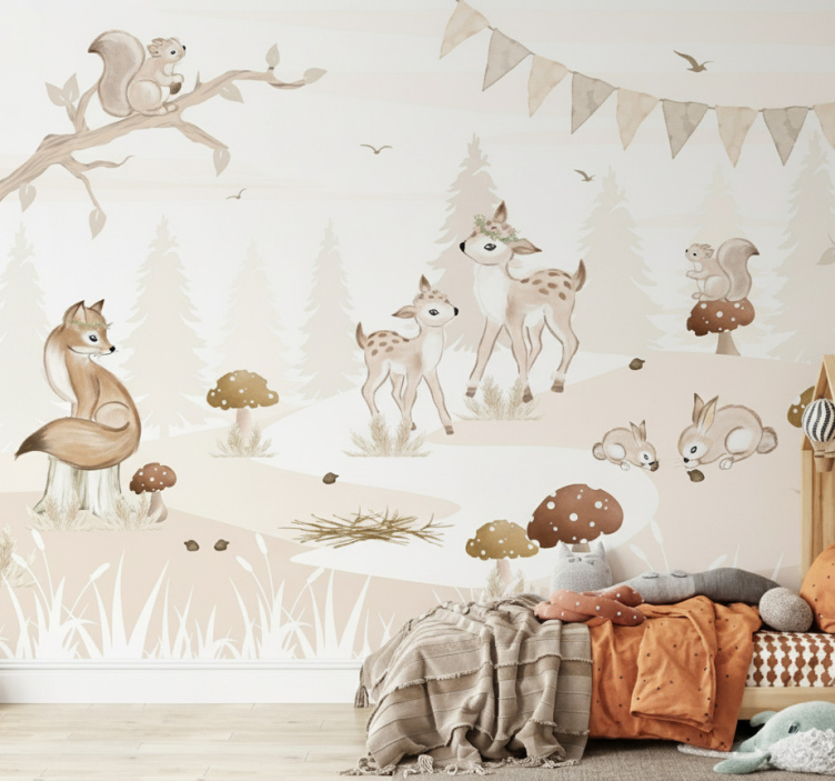El Mural de bosque habitación infantil encantadora es la elección perfecta para quienes desean añadir un toque de magia a la decoración infantil. Este mural no solo embellece la habitación, sino que también inspira a los niños a explorar su creatividad y soñar en grande. Con un diseño evocador, transforma cualquier pared en un cuento de hadas, brindando un entorno lleno de aventuras y alegría. ¡Haz de cada día una nueva historia!