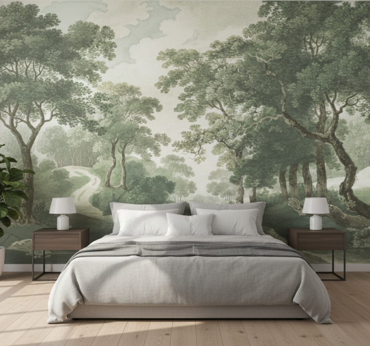 El Mural de bosque mural de bosque naturaleza clásica atemporal es la elección perfecta para quienes desean aportar un aire natural y acogedor a su hogar. Imagina entrar en una habitación donde la naturaleza se siente tan cerca, que puedes casi escuchar el susurro del viento entre los árboles. Este mural no solo decora; transforma tus espacios en refugios de bienestar y estilo, donde cada día es una nueva oportunidad para disfrutar de la belleza del entorno natural desde la comodidad de tu hogar.