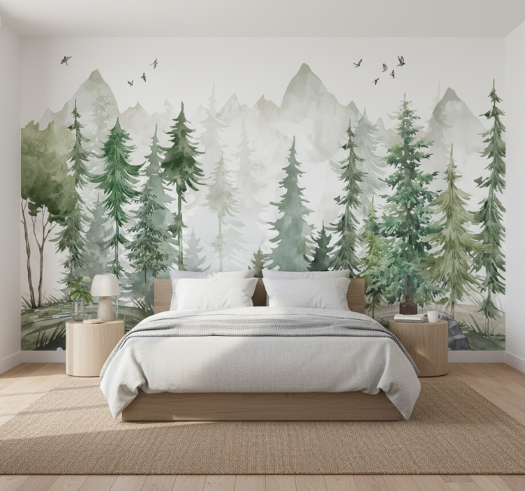 Mural de bosque pino nórdico minimalista