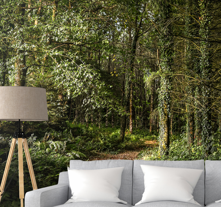 Mural de bosque sendero del bosque frondoso
