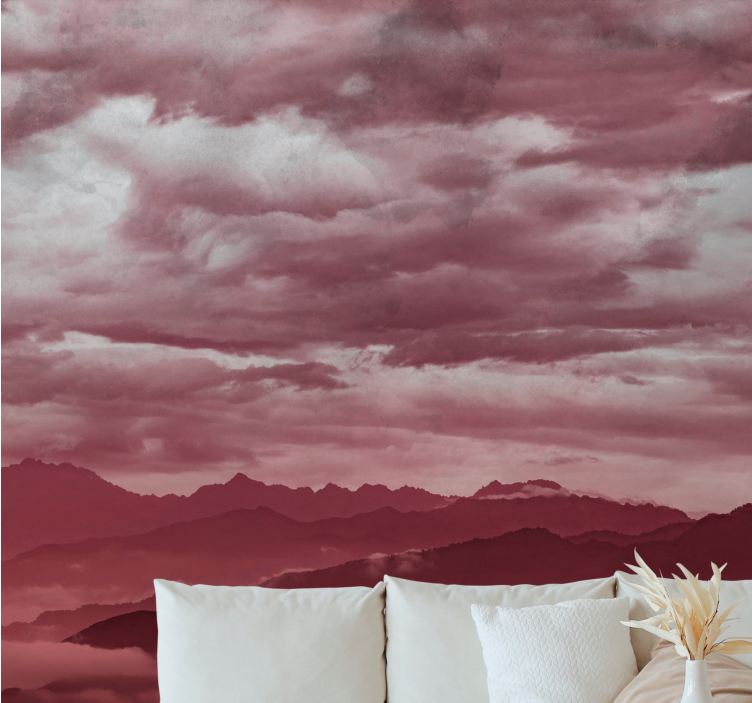 Descubre la belleza de la naturaleza en tu hogar con nuestro Mural de montañas paisaje montañoso místico. Este impresionante diseño presenta montañas en tonos rosa y rosado, rodeadas de suaves nubes que evocan una atmósfera de calma y serenidad. Deja que este mural transforme tus espacios con un toque de magia natural.