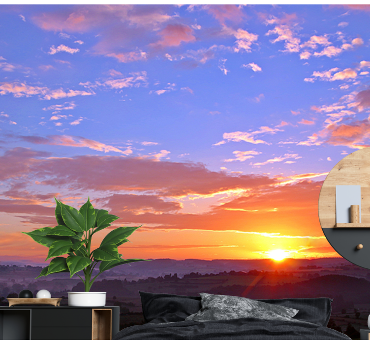 Descubre la belleza de la naturaleza con nuestro Mural de paisajes atardecer sobre colinas, que captura un impresionante diseño gráfico donde un cielo vibrante se encuentra con suaves nubes. Las montañas y sierras se dibujan en el horizonte, creando un paisaje sereno y cautivador que invita a la contemplación. Este mural es una fotografía artística que transforma cualquier espacio, añadiendo un toque de paz y armonía a tu hogar.