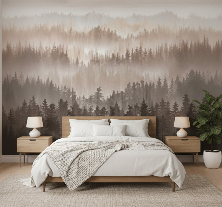 Mural de paisajes capas de bosque de madera
