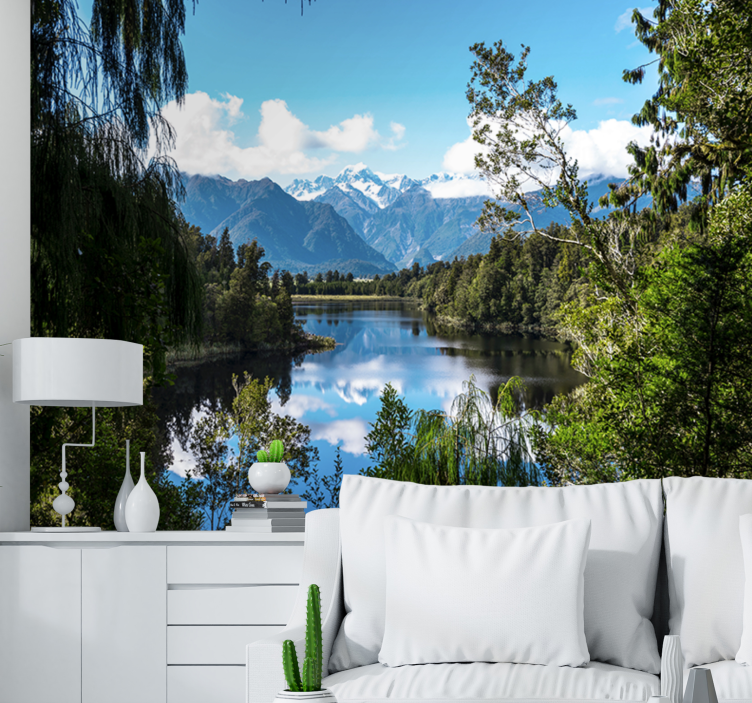 Descubre la belleza natural con nuestro Mural de paisajes perspectiva del arroyo montañés. Este impresionante diseño captura la esencia de un lago sereno rodeado de majestuosas montañas, un río que serpentea entre bosques verdes y un cielo que invita a la contemplación. Cada elemento se entrelaza para crear una atmósfera de paz y conexión con la naturaleza, ideal para quienes buscan un refugio visual en su hogar.