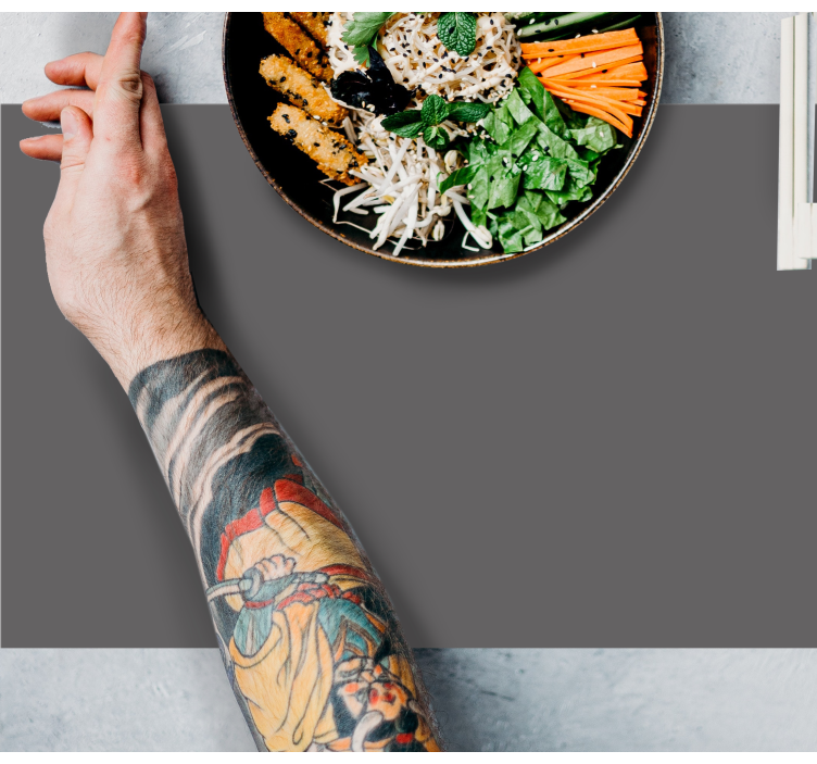 Descubre el encanto del Individual mesa patrón diseño de platos de comida, un producto que transforma tu mesa con su elegante diseño en tonos gris. Este mantel individual presenta un patrón monocolor que evoca la frescura de los vegetales y la calidez de un delicioso cuenco de fideos. Su textura recuerda a un tatuaje artístico, creando una experiencia visual única que hará que cada comida sea especial.