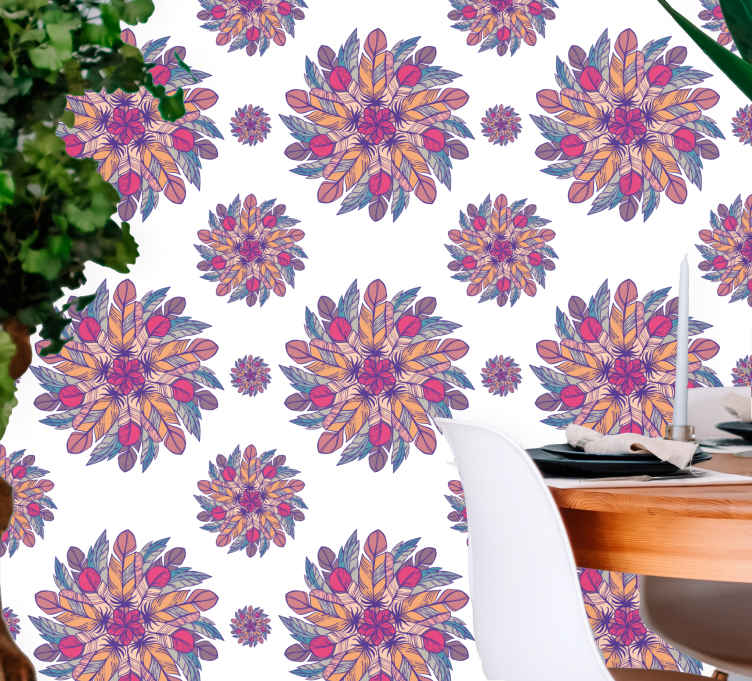 Referencia: P2112Papel pintado de flores de mandala gris y roja