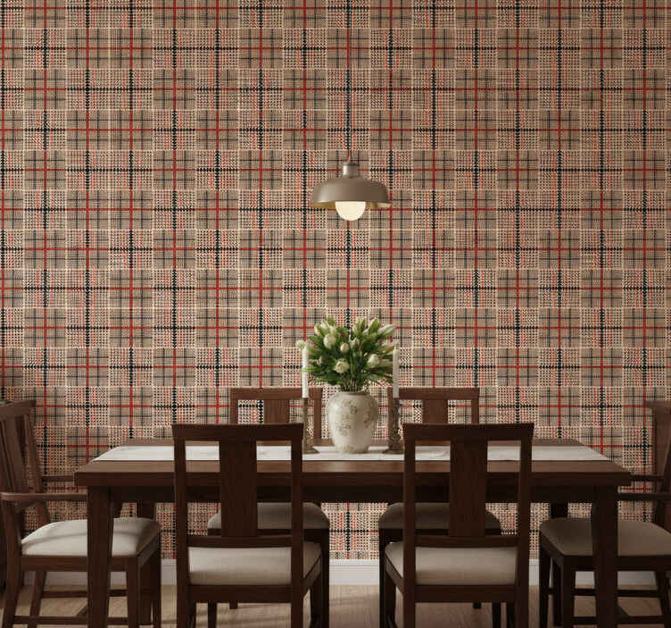 Papel tapiz comedor patrón de cuadros marrón