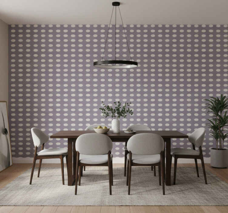 Papel tapiz comedor patrón de lunares minimalista