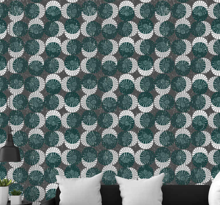 Descubre el fascinante papel tapiz círculos patrón de tonos oscuros, un diseño que combina la elegancia de los círculos con un estilo ornamental único. Este patrón se destaca por su estampado floral y geométrico, creando un ambiente moderno y sofisticado en cualquier espacio.