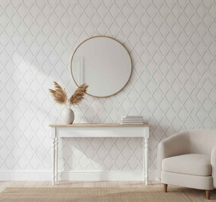 Papel tapiz pasillo patrón rombos 3d hamptons