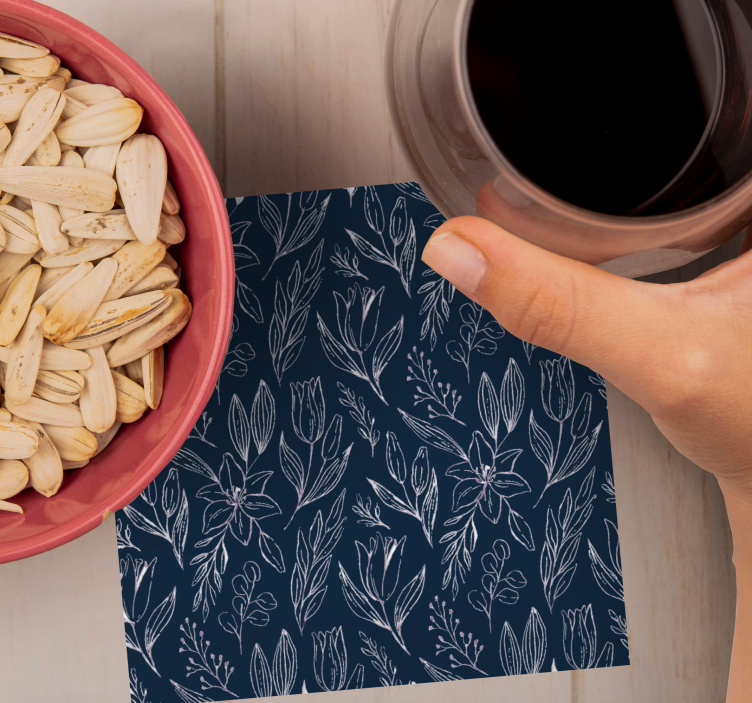 Descubre la belleza de la naturaleza en tu hogar con nuestros Portavasos detalles de patrón floral. Este exquisito diseño presenta lirios y un patrón encantador que evoca la frescura de un jardín en plena floración. Con un estampado y dibujo sin costura, cada ilustración de flores se entrelaza en un fondo azul, creando una sensación orgánica que transforma cualquier mesa. Su textura suave y elegante hará que cada sorbo sea un placer visual y táctil.