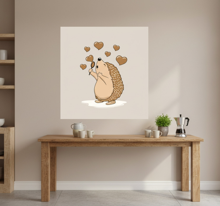 Referencia: G601Descubre la magia de la decoración con el Poster cocina erizo con corazones de amor, una lámina que captura la esencia de la alegría y el amor en cada rincón de tu hogar. Este diseño vibrante presenta un erizo encantador adornado con corazones, ideal para aportar un toque divertido y cálido a tu cocina. Con un acabado semimate que minimiza los reflejos y una alta intensidad de color, este poster será el centro de atención en tu espacio.