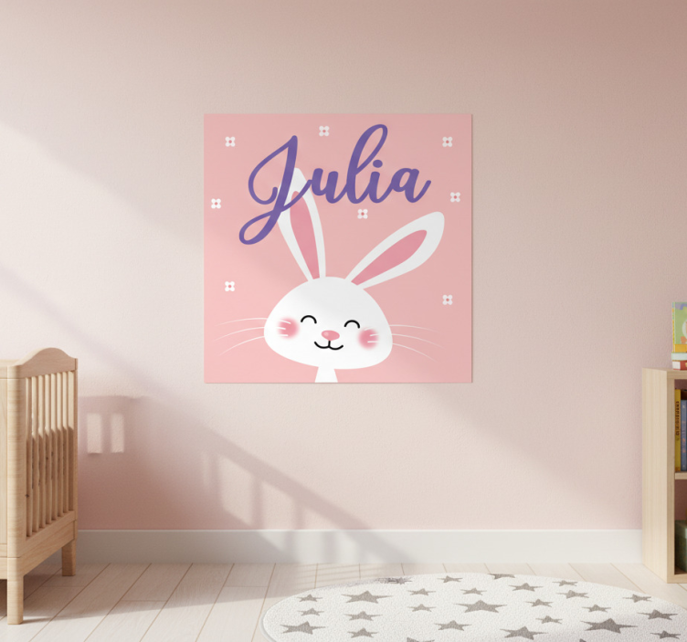 Poster dormitorio infantil conejo blanco con nombre